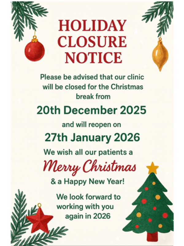 I look forward to meeting you and your family in the clinic. Please note I work on Mondays to Wednesday.